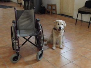 Als die Pfote wieder ausgeheilt war, hatten wir ein ein sehr emotional einschneidendes Thema. Da Nayeli nun als Therapiehund eingesetzt wird, sollte sie auch bisschen Rollstuhltraining machen.